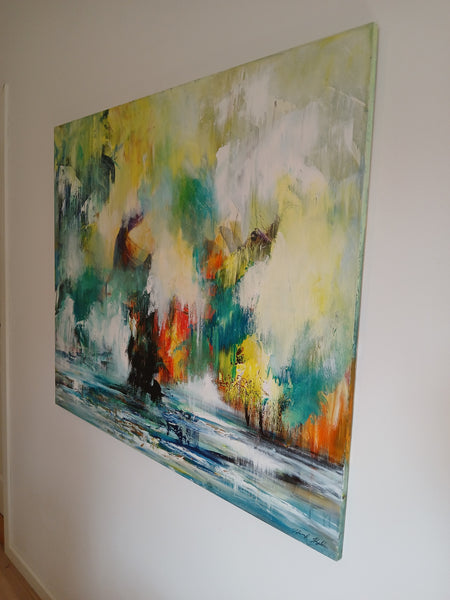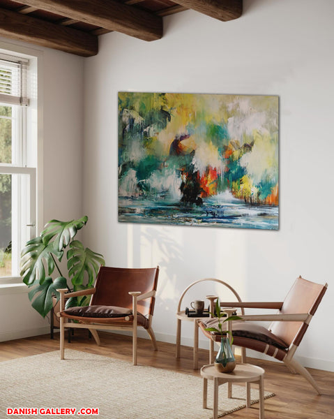 Do you want to see the painting on your wall, before ordering? Just email me a photo of your wall ( info@danishgallery.com ), then I'll do a bit of photoshopping, so you can visualize it easier. Maybe that will help you make the right decision ... :)