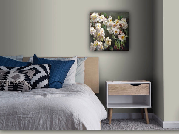 Do you want to see the painting on your wall, before ordering? Just email me a photo of your wall ( info@danishgallery.com ), then I'll do a bit of photoshopping, so you can visualize it easier. Maybe that will help you make the right decision ... :)